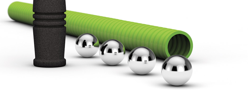 Durch die Vorwärtsbewegung, mit einer anschließenden Gegenbewegung, beginnen die 4 frei beweglichen Stahlkugeln, sich als freie Masse zu bewegen. Sie stoßen dabei pulsierend auf die Rillen und Spiralstege des Schlauches und verursachen beim Anwender eine spürbare Vibration in der Handfläche.